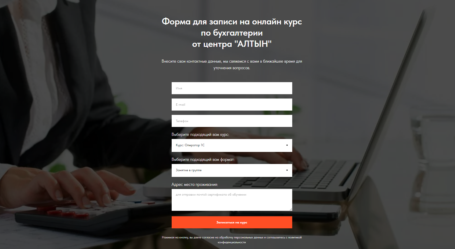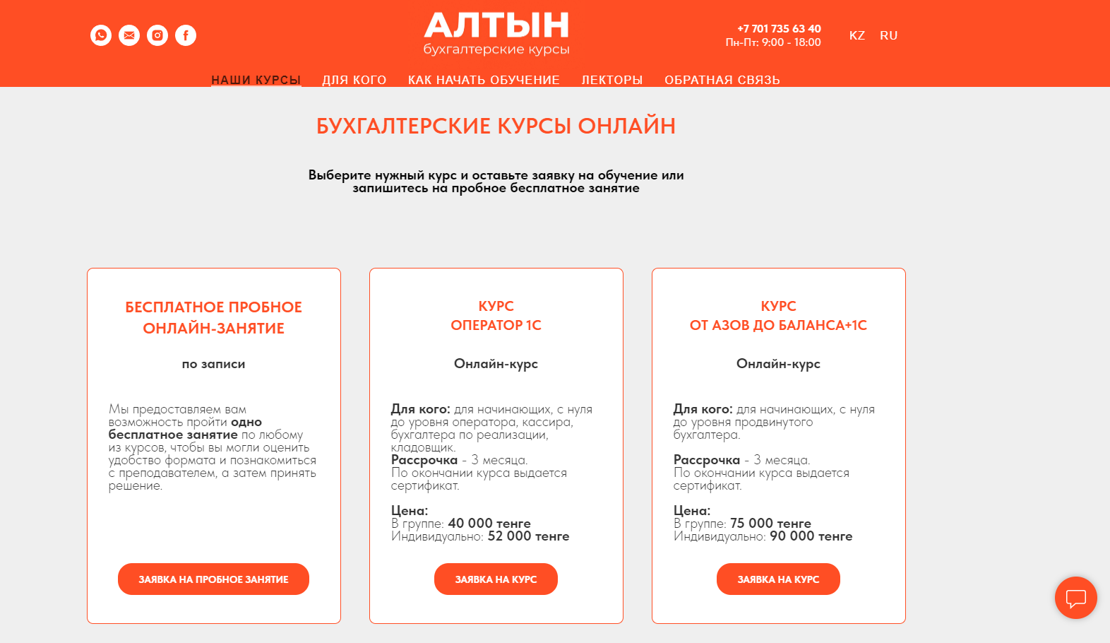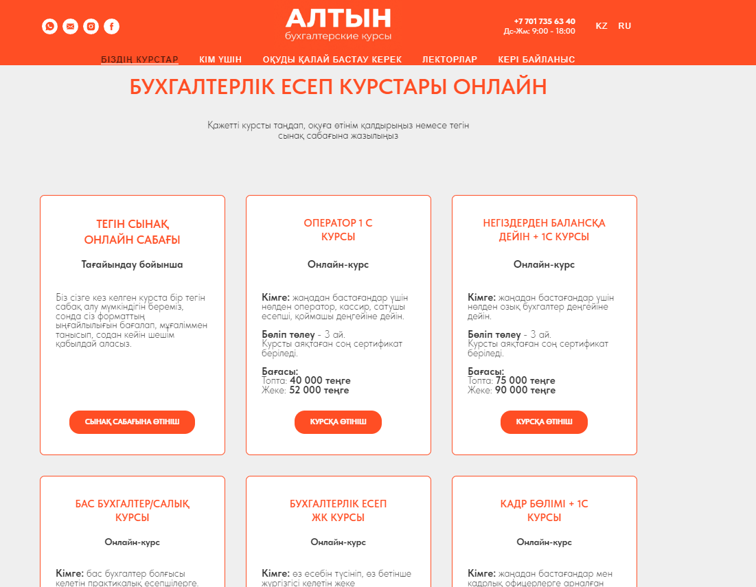 Сайт для бухгалтерских курсов "Алтын"